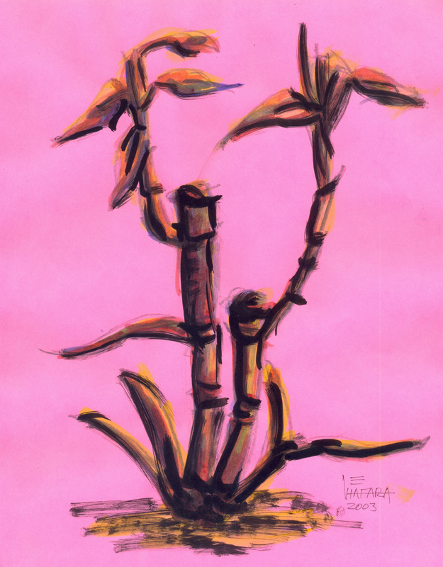 Mi esposa encontró este dibujo que hice en mis tiempos en la escuela de arte, ¡que fino!, es ta hecho en tinta china negra con baños acuarelados de tinta china de colores, sobre una hoja de papel fosforescente 😀