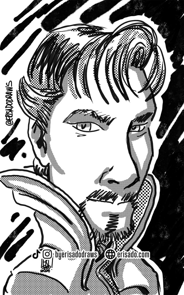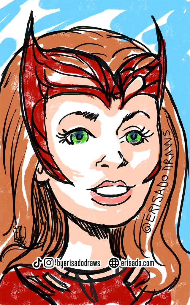 Caricature Zendaya Dune Digital caricature Henry Canvill Superman Digital caricature Elizabeth Olsen Scarlet Witch Digital caricature Benedict Cumberbatch Dr. Strange Digital caricature