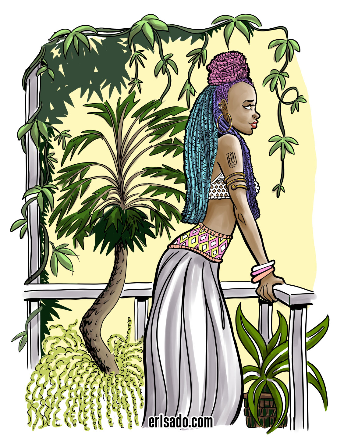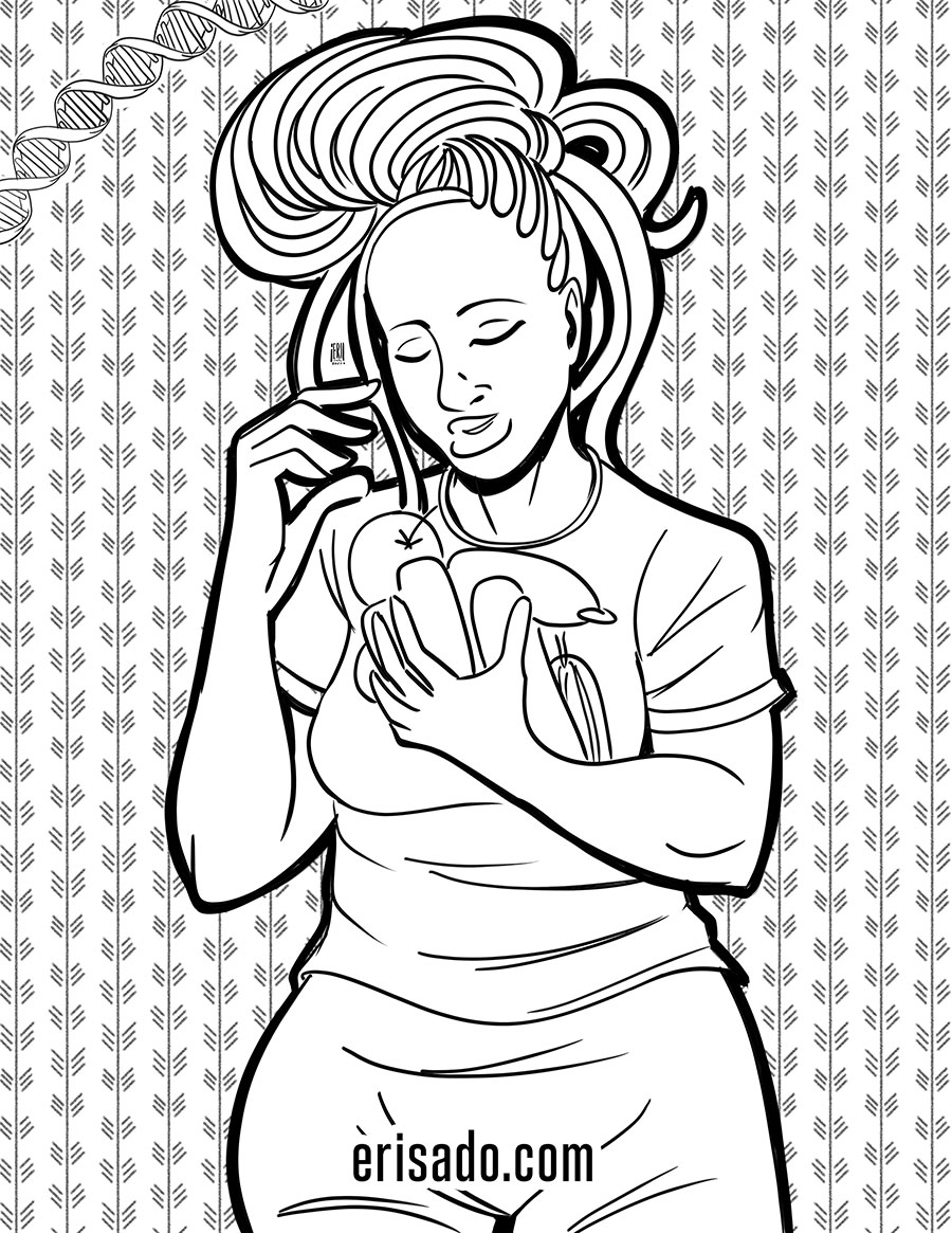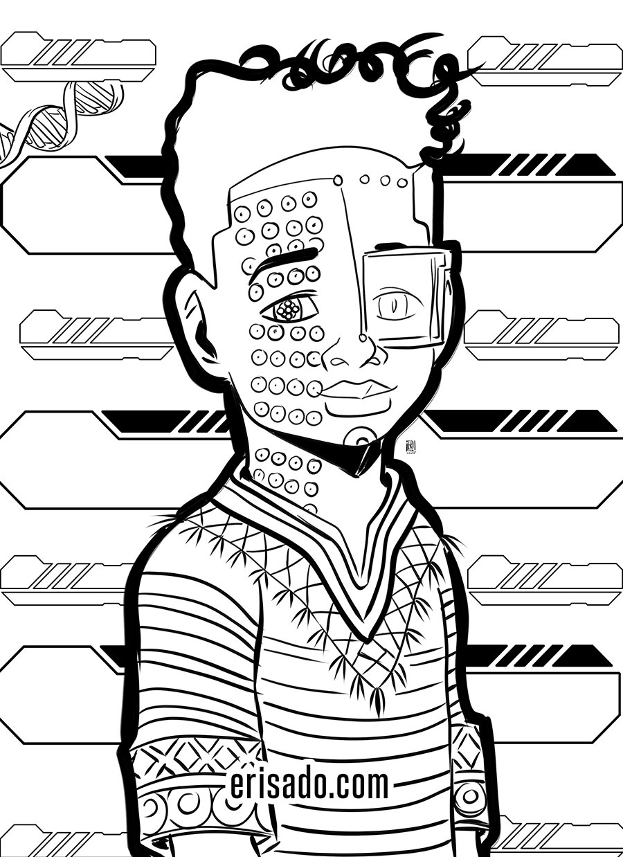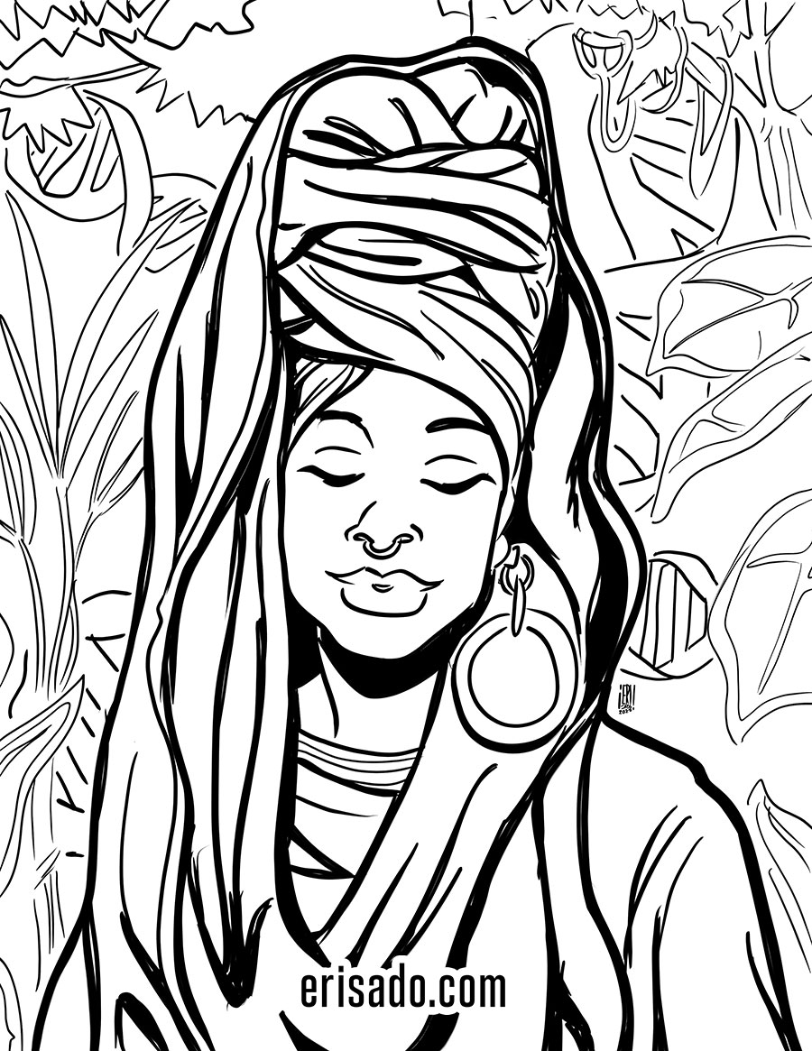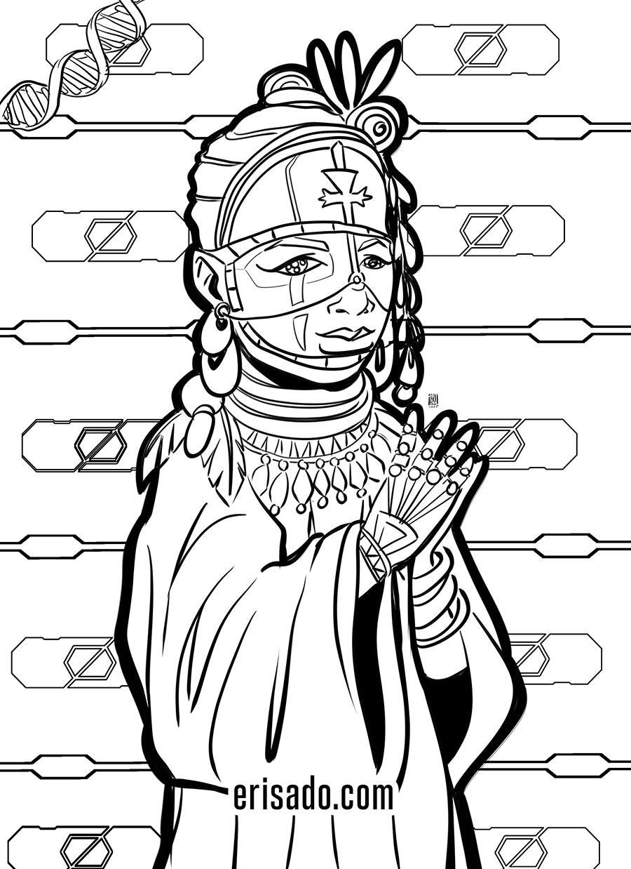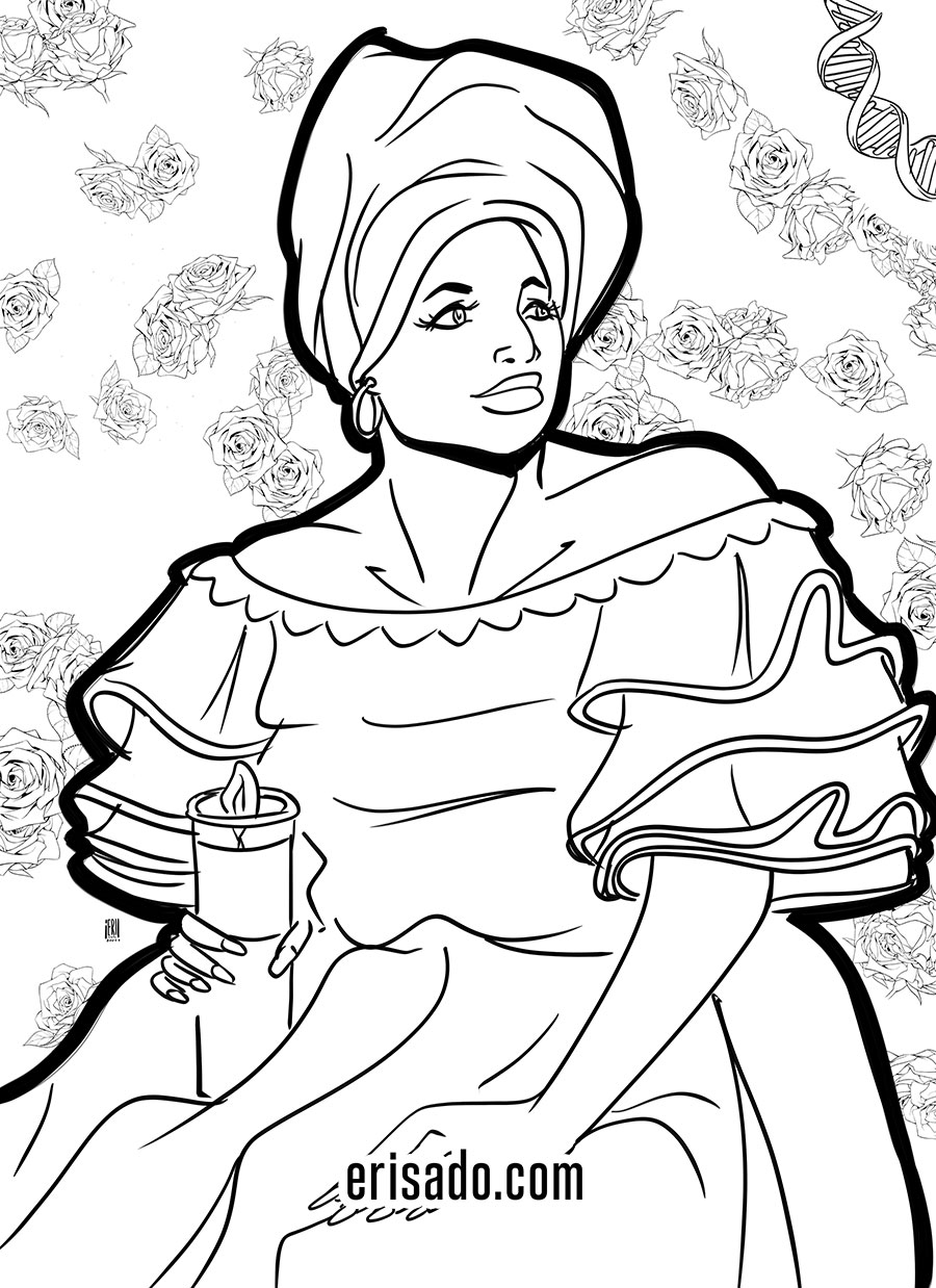 For the second part of the colouring book, Mario let me add my Afrofuturism style for the last 22 illustrations. I love how the work ended, and Mario loves it too!