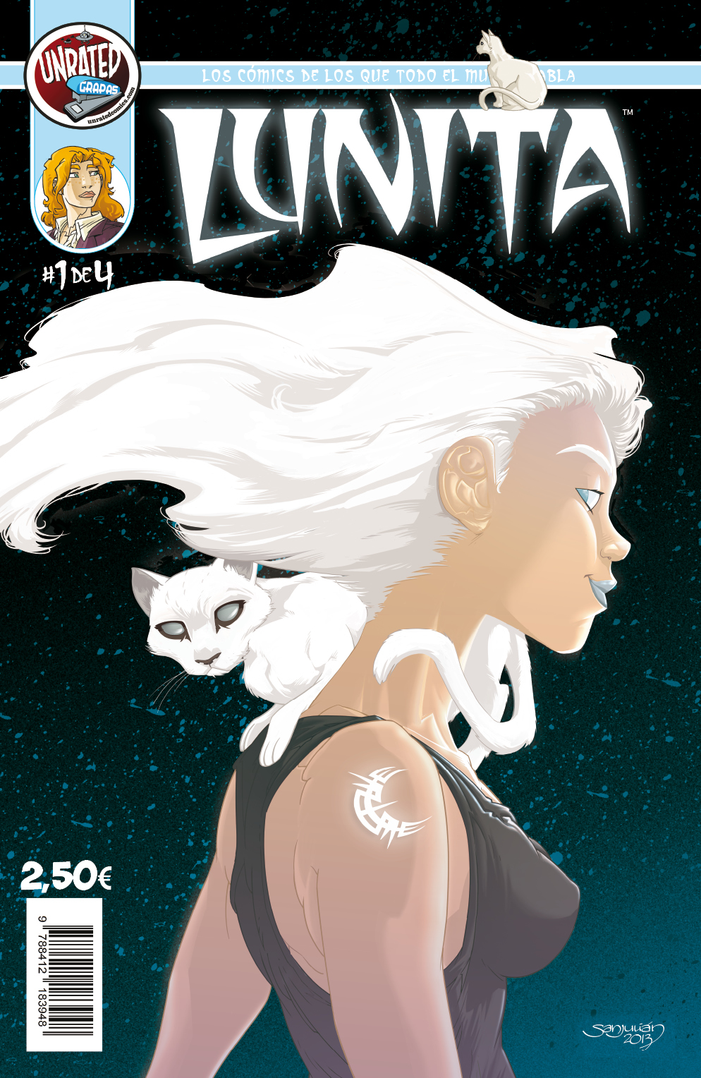 Lettering for the Spanish version of Lunita #1 comic. Edited by Unrated comics. Script by Xavier Morell, art by Sergi San Julián. Original English edition by Amigo comics.