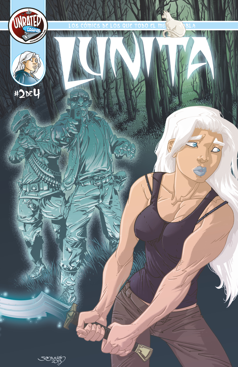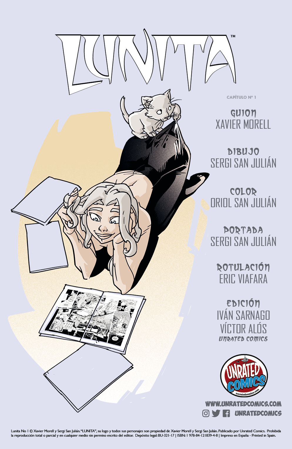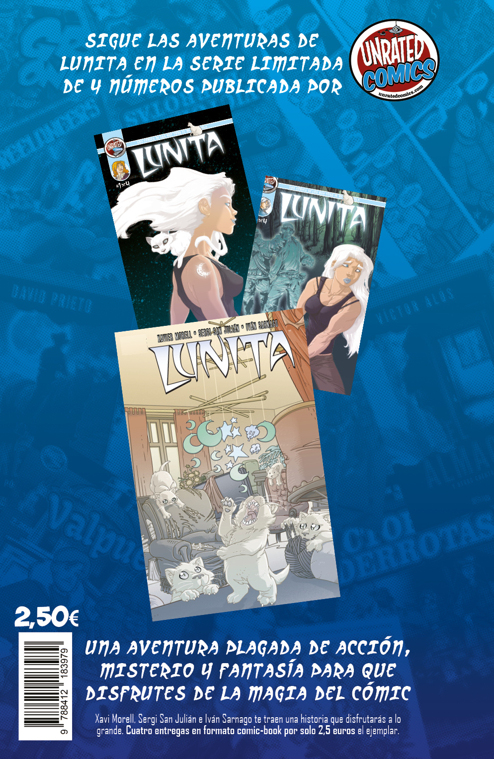 Lettering for the Spanish version of Lunita #2 comic. Edited by Unrated comics. Script by Xavier Morell, art by Sergi San Julián and Iván Sarnago. Original English edition by Amigo comics.