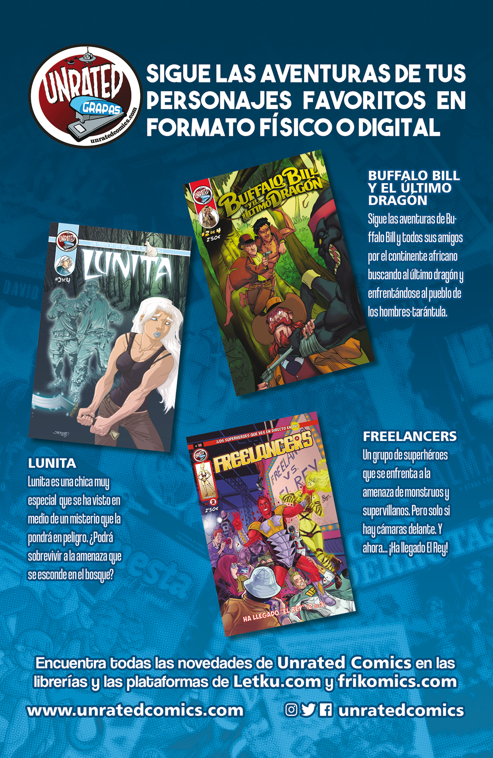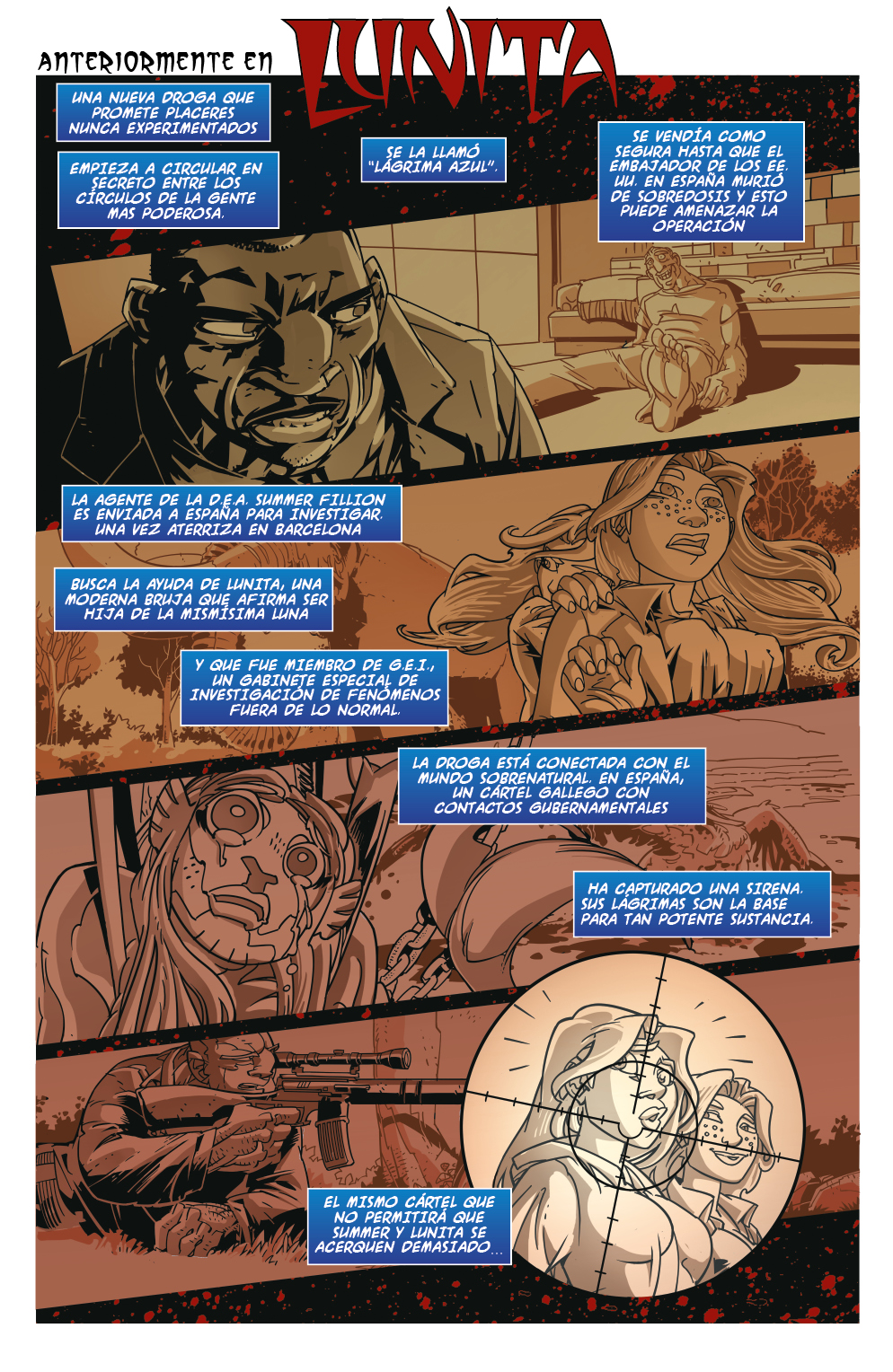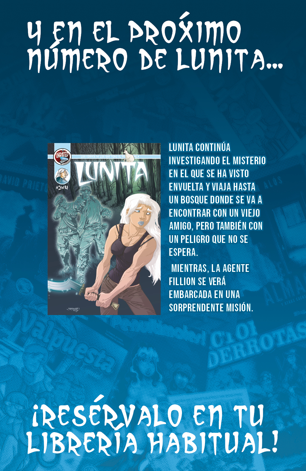 Lettering for the Spanish version of Lunita #3 comic. Edited by Unrated comics. Script by Xavier Morell, art by Sergi San Julián and Iván Sarnago. Original English edition by Amigo comics.