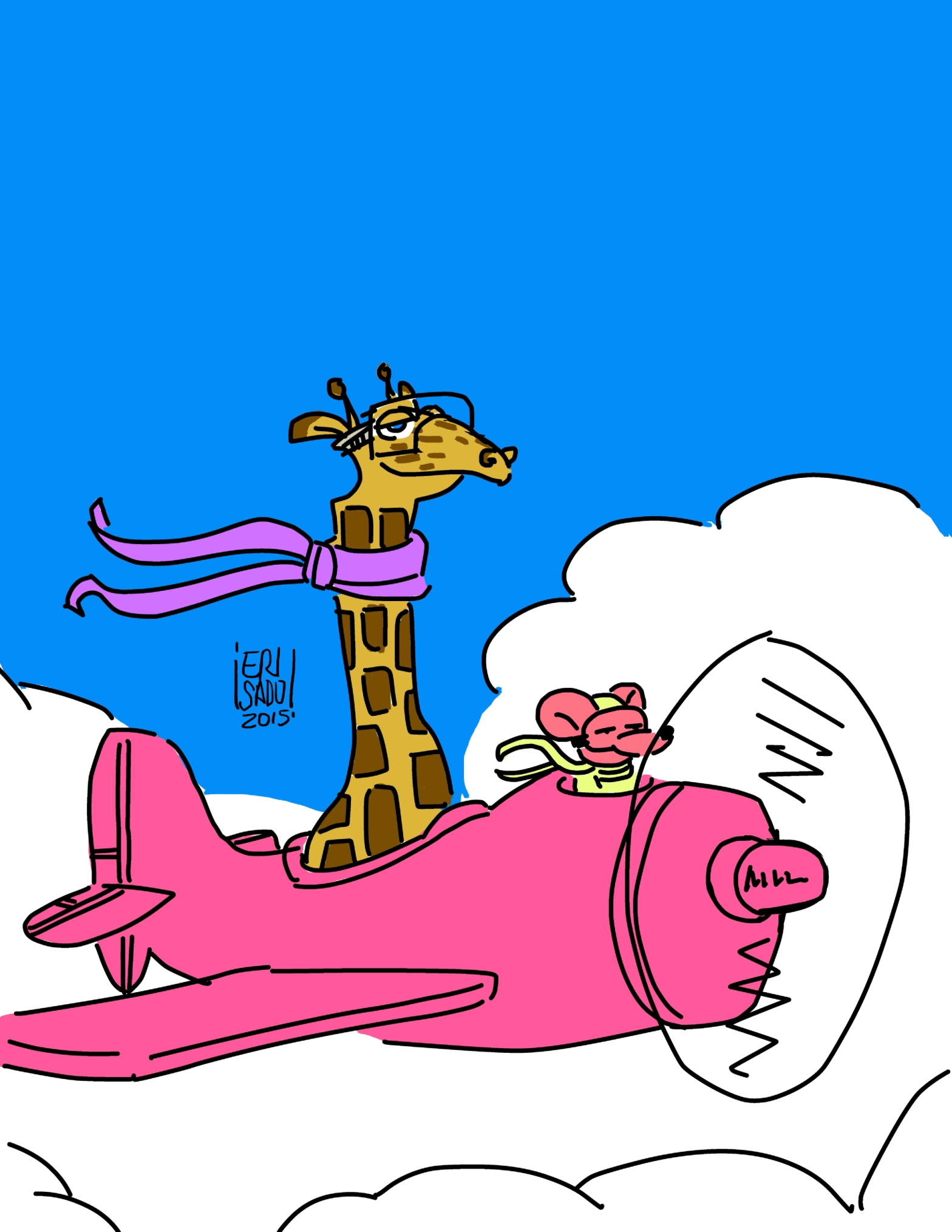 Estas fueron entradas para un concurso de 99 cents.com. Un libro para niños que cuenta la historia del viaje de una ratona rosada y su amiga la jirafa mientras hacen un viaje transcontinental. Manejé dos ideas, una los amigos viajan por su cuenta y la otra, toman un avión. El resultado fueron estos tres artes. 🙂
