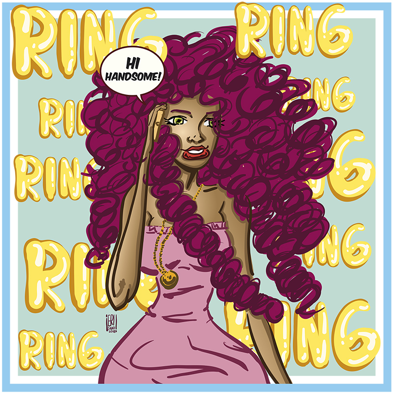 Beautiful curly natural hair girls illustration with phrase Hi Handsome!