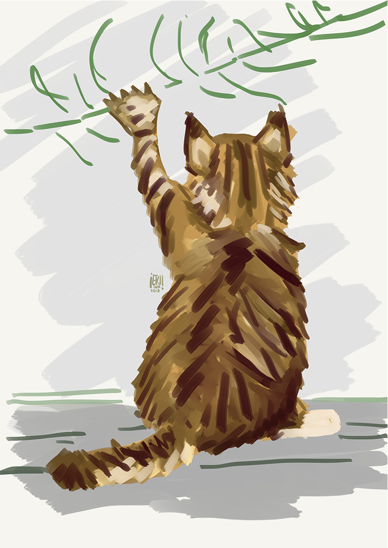 I wanted to work with a playful kitten with a leaf or pen, it is just a sketch for a series of animals that I want to make with watercolor strokes.